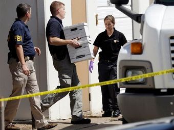 Агенты ФБР изымают документы из офиса Arc Electronics в Хьюстоне. Фото ©AP