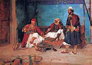 Первые кальяны были сделаны в Индии, однако своему современному внешнему виду они обязаны Турции. Именно отсюда пошла культура курения кальяна, которая османами-кочевниками была занесена в арабские страны. Первоначально кальян изготавливали из скорлупы кокосов. Затем конструкцию усовершенствовали, и производством кальянов стали заниматься самые искусные ремесленники. Они и выделили четыре части, из которых обязательно состоит кальян: мундштук, верхушка, трубка и сосуд, заполняющийся водой. Веками мастера совершенствовали свои искусство, из-за чего кальян получил не только функциональную, но и эстетическую ценность, став неотъемлемой частью восточной культуры, истории и традиций. На Востоке принято курить кальян с наступлением сумерек, сопровождая эту церемонию неторопливыми беседами о политике, семейной жизни или о женщинах. Однако арабы, считающие кальян своим национальным достоянием, разрешают курить его даже женщинам и детям! Это времяпрепровождение стало настолько привычной частью долгих семейных вечеров, что министерство здравоохранения ОАЭ даже сочло необходимым запретить его употребление несовершеннолетними. Предложение выкурить кальян является важнейшим признаком доверия, а отказ может вызвать бурю обид и негодования. Широко известен скандал между Францией и Турцией, разразившийся из-за того, что султан не предложил французскому послу выкурить с ним кальян! Вдумчивый ритуал курения кальяна предполагает ряд незыблемых правил, которые не грех запомнить, чтобы не осрамиться в глазах опытных курильщиков. Итак... Правило N1. Никогда не передавайте кальян из рук в руки – это считается правилом плохого тона. Лучше поставить его на пол, чтобы сосед мог дотянуться до кальяна сам. Правило N2. Не ставьте его на стол, не прикуривайте от него обычную сигарету. Еще одно предостережение – сам по себе кальян обладает опьяняющим и расслабляющим свойством, так что использование алкоголя в сочетании с ним совершенно излишне. Однако если вы непременно решили достичь нирваны, можно добавить в кальян вино или другие спиртосодержащие напитки, которые придадут дыму убойную силу. Но если вам дорого собственное здоровье, ни в коем случае не пейте эту жидкость – в ней оседают все вредные вещества из табака. Правило N3. Не пытайтесь использовать для кальяна сухой, не предназначенный для этой цели табак – можно серьезно обжечь горло! Различается несколько видов табака для кальяна: массиль – медовая смесь, томбак – чистый табак и журак, который является промежуточным звеном между первыми двумя. В массиль зачастую добавляются ароматы яблока, клубники, мяты, винограда, арбуза, дыни, розы и лакрицы. Это самый распространенный вид кальянного табака. Томбак, как самый алкалоидо-содержащий вид, перед употреблением принято очищать следующим образом: его замачивают, затем курильщик несколько раз отжимает его в руке, и только после этой процедуры начиняет кальян. Журак главным образом распространен на Пиренеях, и помимо фруктов, содержит различные масла или патоку. Любители покайфовать добавляют в сосуд кислые вишни или виноград, чтобы наблюдать за их перемещением в воде, или гранатовый сок и розовое масло для усиления аромата. Раньше курильщики добавляли в кальян различные наркотические смеси. К примеру, султан курил смесь опиума, аром