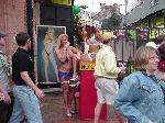 Hozain vigulivajussii svoju sobachku,v takoi poze on stojal kak minimum 10 minut. Bourbon Street,Mar |  samaja raskovanaja ulca amerike Borbon Street,New Orleans,Lousiana |  vsjo eto vi mozete uvidet v ljuboi den,posetiv Bourbon Street,New Orleans,Lousiana,usa |